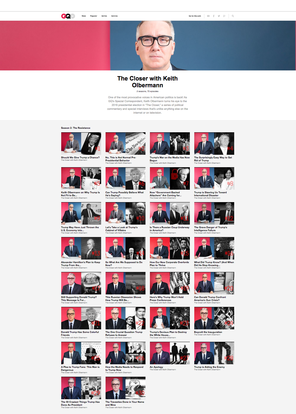 Tja, wie kam ich drauf? Unter dem Titel „Season 2: The Resistance“ tut Keith Olbermann genau das auf der Online-Plattform der GQ. Er nimmt dabei kein Blatt vor den Mund. Hier ist sein erstes Video der Season 2: