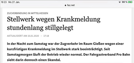 Mit dem verweis auf Wikipedia kommt es mir darauf an, einerseits, die „paar Damen und Herren“ dieses hingeworfenen Schnipsels als Phantasmagorie zu outen, andererseits aber auch das Dath’sche Zielbild ein paar praktischen Zweifeln auszusetzen. Und zwar OHNE zu bestreiten, dass der Interessenkampf, der möglicherweise auf verschiedenen politischen Levels Ansprüche z.B. der Autoindustrie gegen die Möglichkeiten z.B. des ÖPNV ins Feld führt, administrativen Niederschlag finden KÖNNTE; oder, dass fiskalische Übergriffe eines Shareholders in das Planungswerk der Bahn dort Flurschäden zeitigt. Das mag nämlich sein – bei einem Geschehen von der Komplexität des bundesdeutschen Schienenverkehrs solche Steuerungseingriffe aber mal eben so wurschtelig daher und nach unbestimmten „demokratischen“ Kriterien für besser zu behaupten, untergräbt die ernsthafte Auseinandersetzung – und wäre sie zum Vorteil einer „demokratischen Planung“ gemeint.